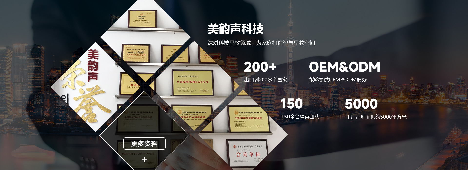 美韵声科技,自2007年起,深耕科技早教领域,为家庭打造智慧早教空间。公司位于深圳龙岗,拥有5000平米现代化基地及150余名精英团队,专注于智能国学启蒙机、故事机及全方位早教产品的研发与制造。我们秉承“创新早教”理念,追求卓越品质,荣获多项国际认证及专利,彰显技术创新与合规实力。